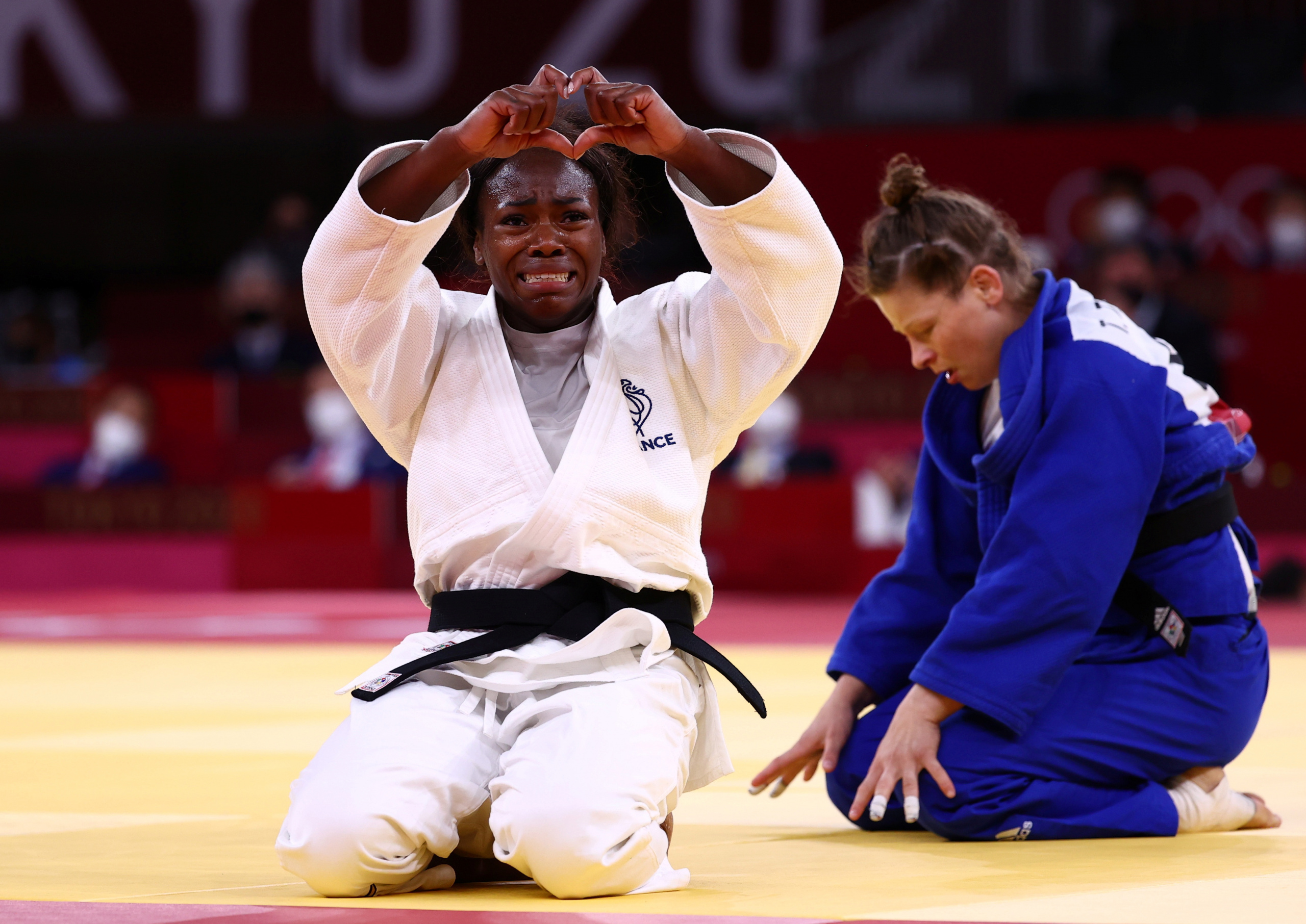 Tokyo 2020 Olympics – Judo – Women’s 63kg – Gold medal match – Nippon Budokan – Tokyo, Japan – July 27, 2021. Clarisse Agbegnenou of France celebrates after winning gold against Tina Trstenjak of Slovenia