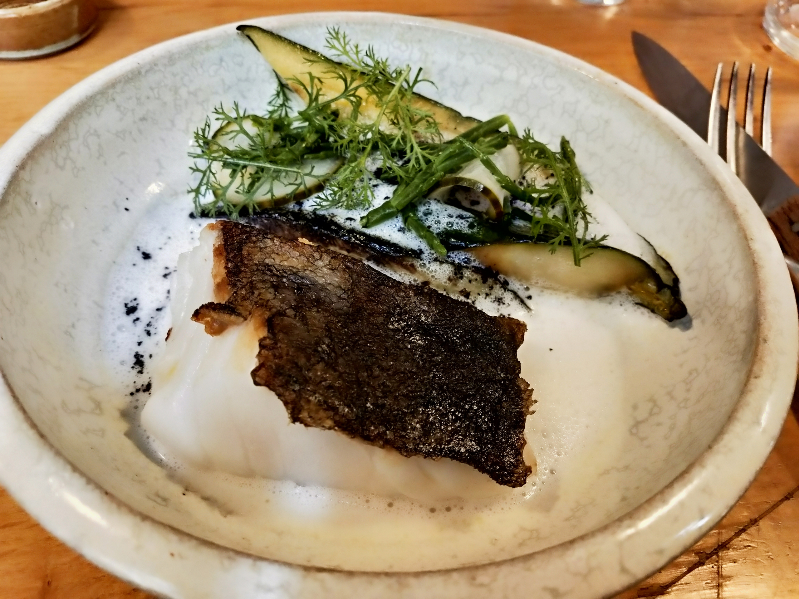 Mais nous ne pouvons que vous conseiller de venir découvrir la cuisine d’Amandine, en vous installant dans la salle du fond qui donne sur les cuisines et un joli patio hors du temps. Là, vous découvrirez des assiettes où le végétal est à l’honneur (le mercredi c’est même 100% végétal). Le principe est simple : il faut faire confiance à la cheffe. Vous ne choisissez que le plat (poisson, viande ou végétarien), le reste est une balade dans un univers savoureux, surprenant, créatif, aux associations particulièrement juste et aux prix serrés (le menu déjeuner à 28€ est une affaire formidable). Les jolis jus sont à saucer avec le pain de chez Thierry Breton, les cuissons sont d’une précision scientifiques, les légumes croquent, les poissons vous transportent sur les chalutiers de l’Atlantique. Un régal de bout en bout !