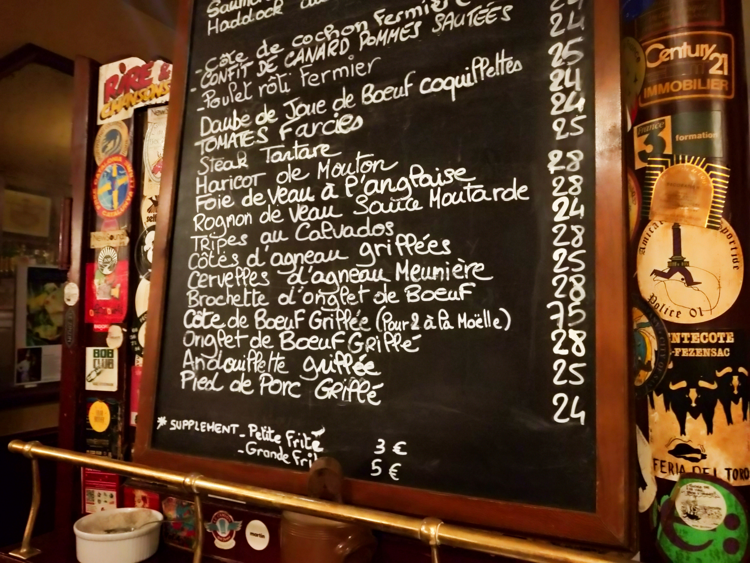 Le groupe Bertrand l’a racheté en 2020 et la peur fut que le bistrot soit broyé par la maison tentaculaire. Mais loin de vouloir standardiser les lieux, le cachet a été conservé, avec juste un p’tit coup de propre. On retrouve donc le zinc resplendissant, les deux rangées de tables et les banquettes, les serviettes à carreaux, les poutres ainsi que les murs couverts de souvenirs des grands noms passés dans l’établissement (Kessel ou De Gaulle par exemple). On y mange toujours une solide cuisine tripière qui rappelle le passé boucher du quartier, des rognons à la daube de joue de bœuf, sans oublier les haricots de mouton et la cervelle d’agneau meunière, le tout arrosé de quelques boutanches faciles.