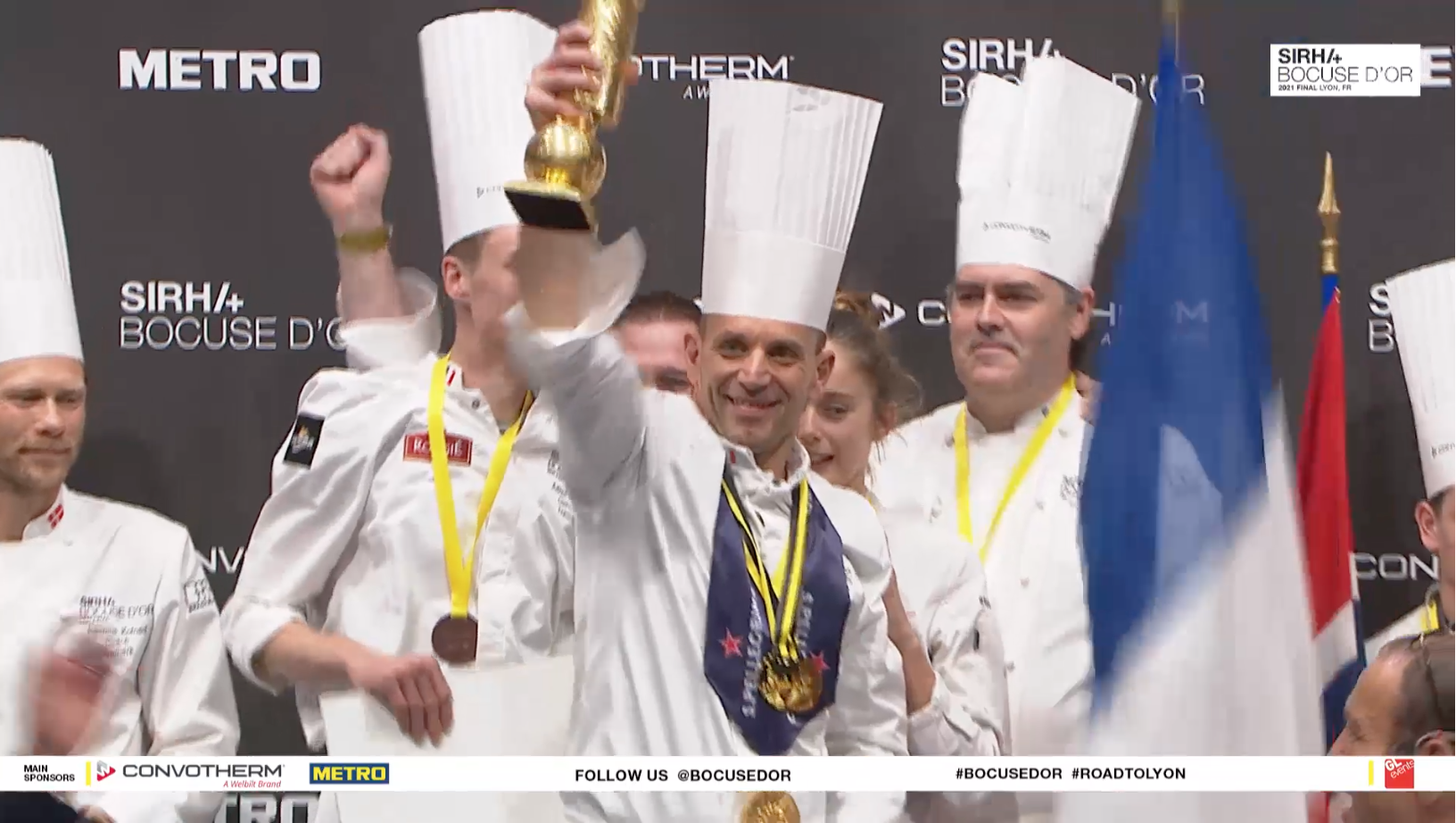La France concourrait avec Davy Tissot (restaurant Saisons) qui a le bon goût d’être… lyonnais. La pression était d’autant plus grande pour le cuisinier qui jouait à domicile. Mais celui-ci a relevé haut la main le défi en remportant le Bocuse d’Or avec beaucoup d’émotion. Le prix lui a été remis par Laurent Wauquiez, président de la région Auvergne-Rhône-Alpes sous des tonnerres d’applaudissements, en présence des partenaires et de l’ambassadeur de la gastronomie, Guillaume Gomez.