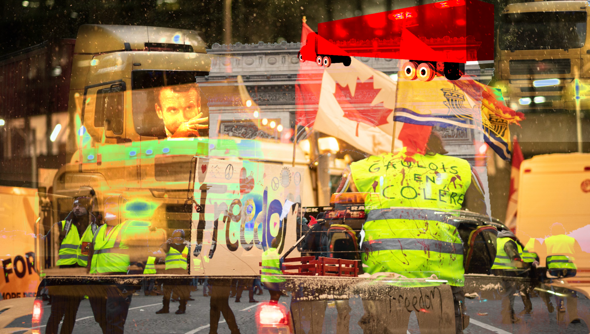 Trois ans après, le « populisme du bitume » qu’ont en commun les ronds-points des gilets jaunes et les routes des camionneurs canadiens, semble faire des émules en France. Et pour cause, depuis juillet 2021, les anti-pass sanitaires avaient déjà préparé le terrain en confisquant le mot liberté. Rappelons-nous l’été dernier : Florian Philippot, drainant dans son sillage ce qui lui reste de partisans haineux, aigris, et au penchant fascisant et complotiste bien prononcé, et réclamant tous les samedis, au nom des autres, le droit de ne pas se vacciner (enfin, les leaders l’étaient certainement, les lâches).