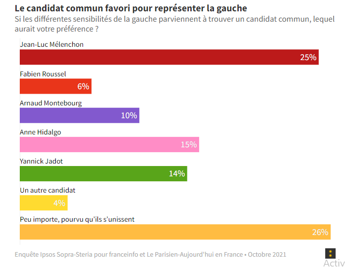 Selon l’IFOP et de nombreux instituts, les sympathisants de gauche « souhaitaient une candidature unique de la gauche » à 70 %, et ce pour trois sondages s’étalant entre novembre 2020 et novembre 2021. Sur les 7 Français sur 10 concernés, seulement 4 considéraient qu’une telle alliance pourrait se concrétiser. Pis encore, tous les candidats étaient vus par l’électorat de gauche comme de mauvais représentants. Ces doubles craintes semblent bien se réaliser…