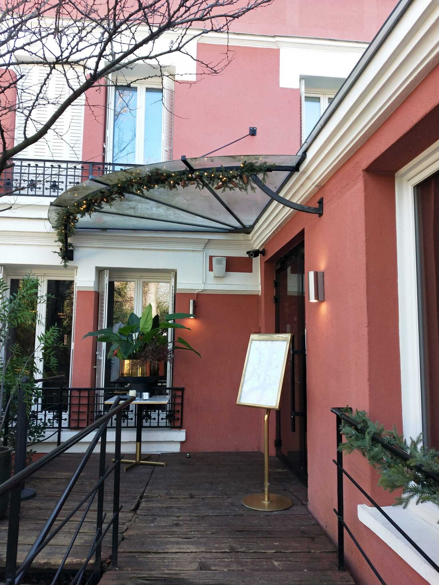 Au bout de la ligne 9, Montreuil. On remonte une avenue telle qu’on en trouve tant aux portes de Paris, avec un centre commercial, des enseignes de chaine, des fast-foods. Et puis on tourne à gauche et on se retrouve dans une ruelle pavée avec des maisonnettes entourées de murs en pierre et de fleurs. Comme dans un charmant village de province, on se balade dans le calme à peine troublé par deux ou trois voitures et le chant des oiseaux. Le virage à 90° après avoir laissé le métro est brutal. On se retrouve devant la Villa 9-trois sans crier gare et le même étonnement nous saisit en franchissant la grille du parc qui s’ouvre sur une allée bordée d’arbres. À droite la serre où poussent les agrumes, non loin les poules qui picorent tandis que les herbes aromatiques embaument l’air. Tagète, livèche, oxalis viendront se poser sur les plats, à peine cueillis. Nous sommes ailleurs, à une encablure de la capitale. La salle du restaurant possède également une atmosphère particulière, un peu surannée avec sa vaste cheminée, ses boiseries et ses fauteuils douillets qui tranchent avec la jeunesse de l’équipe.