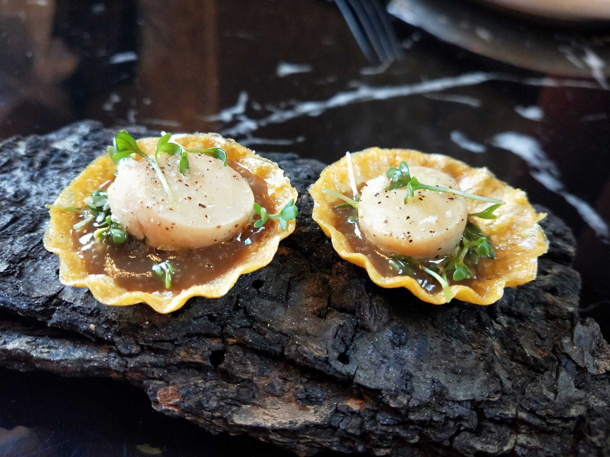 Les créations de Camille, épaulé par Curtis Fallourd, son second, sont toujours sur la corde raide, équilibres subtils entre légumes d’antan et nobles protéines, plats rassurants et créativité débordante. Le jeune homme maîtrise. Doublé d’un véritable sens de l’esthétisme, le chef propose des assiettes colorées, avec des jus brillants et du peps à chaque bouchée. On s’attarderait volontiers dans cette ambiance chaleureuse et finalement assez dépaysante. Tiens ! Par la fenêtre, des perroquets, là un paon. Non, ce n’est pas une illusion, les animaux se sont échappés du Zoo de Vincennes voisin et viennent également prendre un bol d’oxygène.