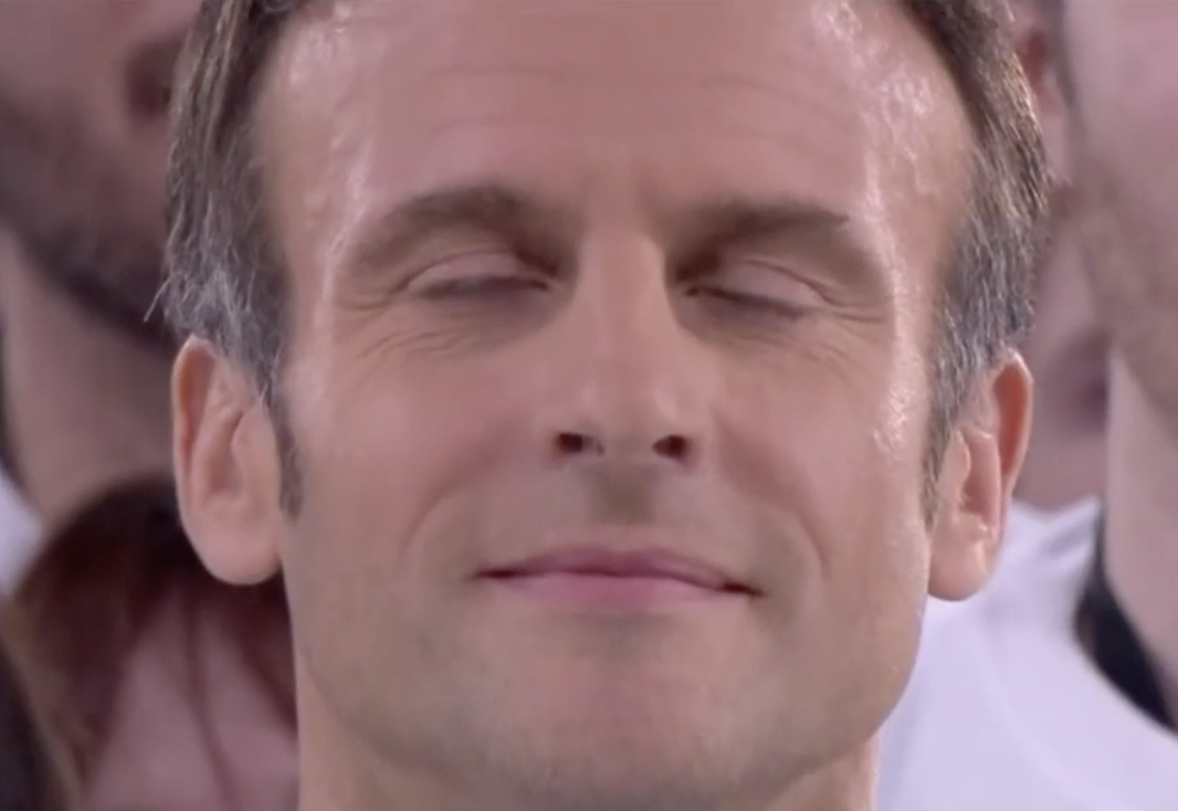 A quoi pensait Emmanuel Macron en fermant les yeux sur la Marseillaise lors de son seul meeting du premier tour à La Défense [notre photo] ?