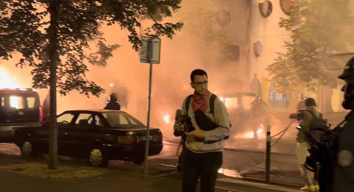Tout au long de la nuit, Nanterre s’est transformé en zone de guerre civile, un centre Enedis a été incendié aux alentours de 04:00. Partout en France des scènes similaires ont pu être observées. Cette nuit la défiance contre les médias était très grande, dans beaucoup de quartiers des collègues journalistes ont été empêchés de travailler.