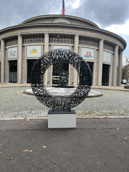 Nasser Al Aswadi, Amour, 2023, acier inox, 200 X 200 cm. Exposé par la galerie Carré sur Seine de Teddy Tibi