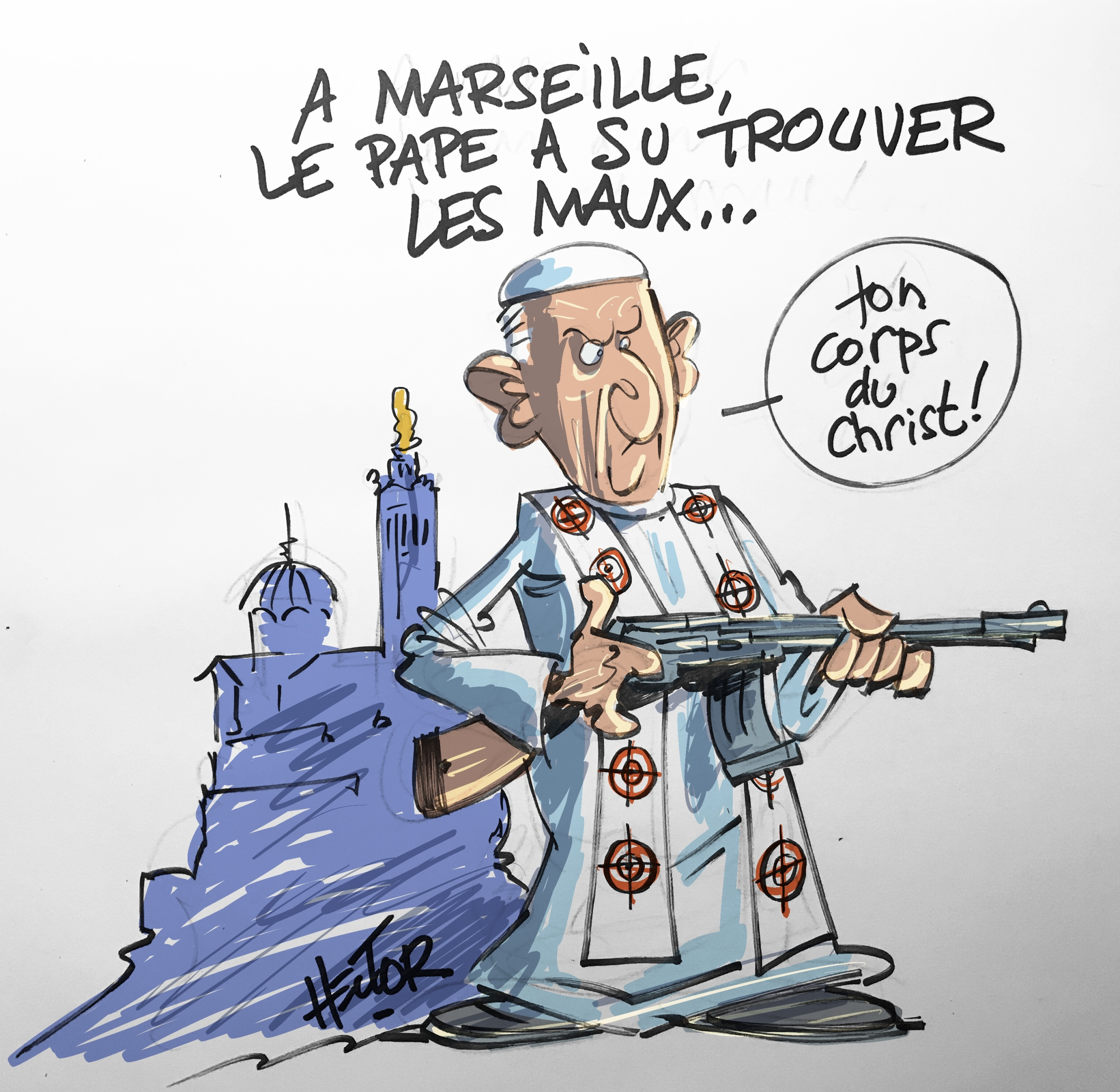 Côté pile, côté coeur, côté doctrine sociale de l’Eglise (fortement contestée parmi de nombreuses chapelles de la chrétienté), le pape ne va pas manquer de répéter le sermon déjà délivré hier devant le mémorial dédié aux marins et migrants perdus en mer de Marseille : « Nous ne pouvons plus assister aux tragédies des naufrages provoqués par des trafics odieux et le fanatisme de l’indifférence. Les personnes qui risquent de se noyer, lorsqu’elles sont abandonnées sur les flots, doivent être secourues. C’est un devoir d’humanité, c’est un devoir de civilisation ».
