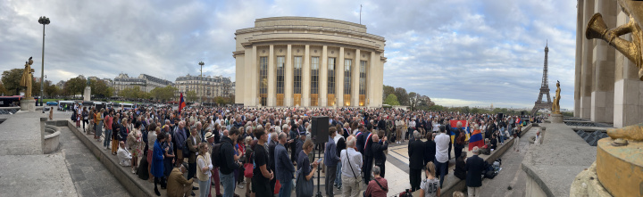 Jeudi 28 septembre, place du Tocadéro à Paris, sur le parvis des droits de l’homme, les Chrétiens d’Orient ont organisé un rassemblement émouvant pour protester contre l’annexion du Haut-Karabagh, la République d’Artsakh, par l’Azerbaïdjan.