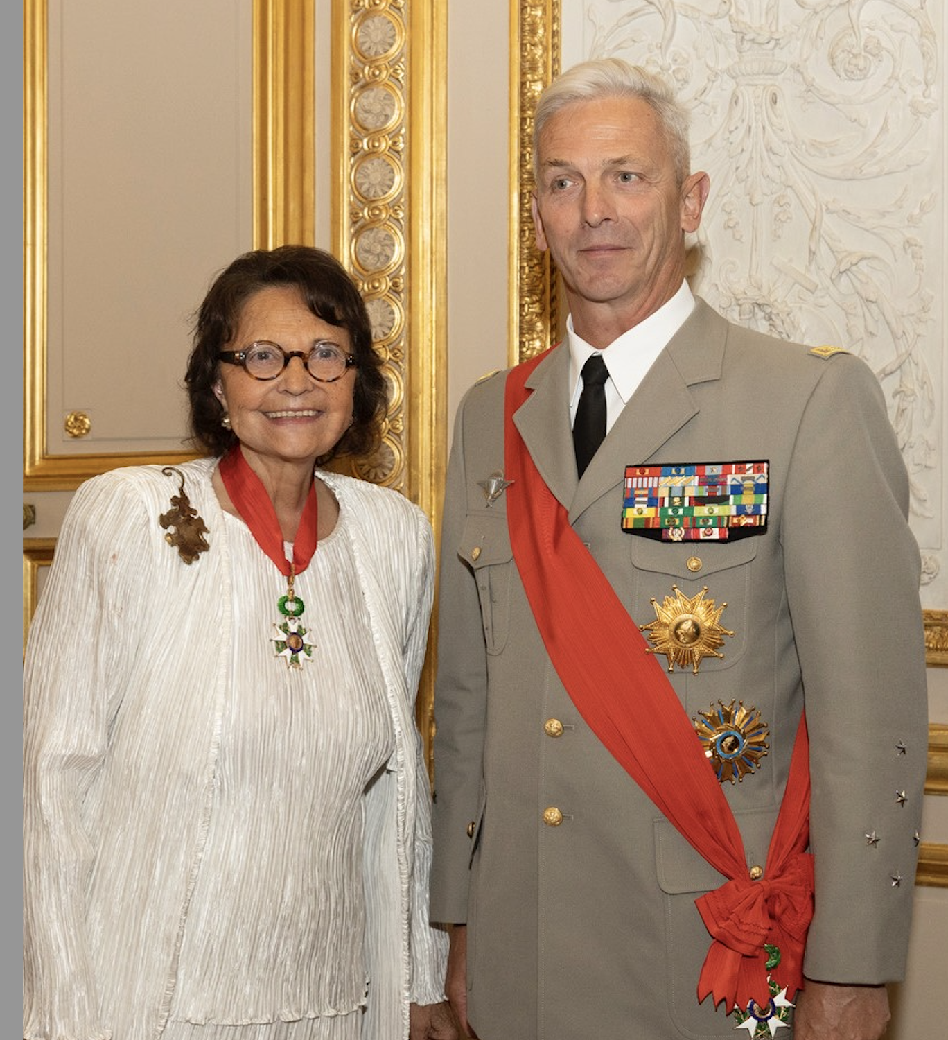 Ghislaine Alajouanine a donc reçu le 16 octobre 2023 les insignes de Commandeur de la Légion d’honneur par le Grand Chancelier (le cinquième à honorer cette femme d’exception) et Général d’armée François Lecointre.