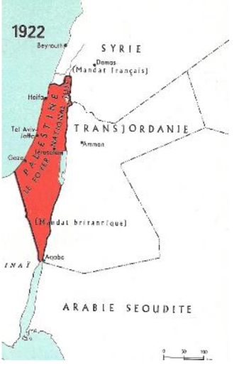 Les peuples arabes s’y opposent violemment et une partition de ce mandat en deux états est élaborée alors :