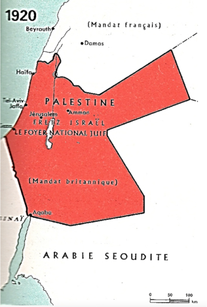 La déclaration Balfour consacre la volonté des Nations vainqueurs du premier conflit mondial de réinstaller le foyer national juif en Palestine, très peu peuplée à l’époque, un territoire difficile avec des marécages insalubres et des grandes zones désertiques. C’est ce que certains appellent le Grand Israël. La carte parle d’elle-même :