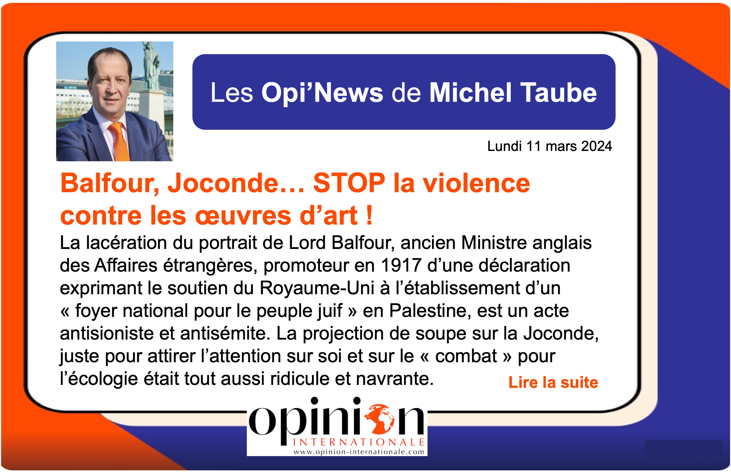 La lacération du portrait de Lord Balfour, ancien Ministre anglais des Affaires étrangères, promoteur en 1917 d’une déclaration exprimant le soutien du Royaume-Uni à l’établissement d’un « foyer national pour le peuple juif » en Palestine, est un acte antisioniste et antisémite.