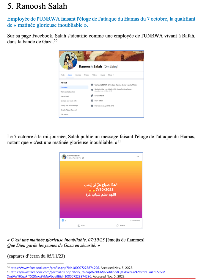 Un fait majeur implique la France : On le sait, les terroristes du Hamas, régime putschiste à Gaza, ont pour complices des crimes et kidnappings du 7 octobre, des agents de l’UNRWA, agence de l’ONU créée en 1949 pour prendre en charge les « réfugiés » palestiniens avec l’aide financière du monde entier.