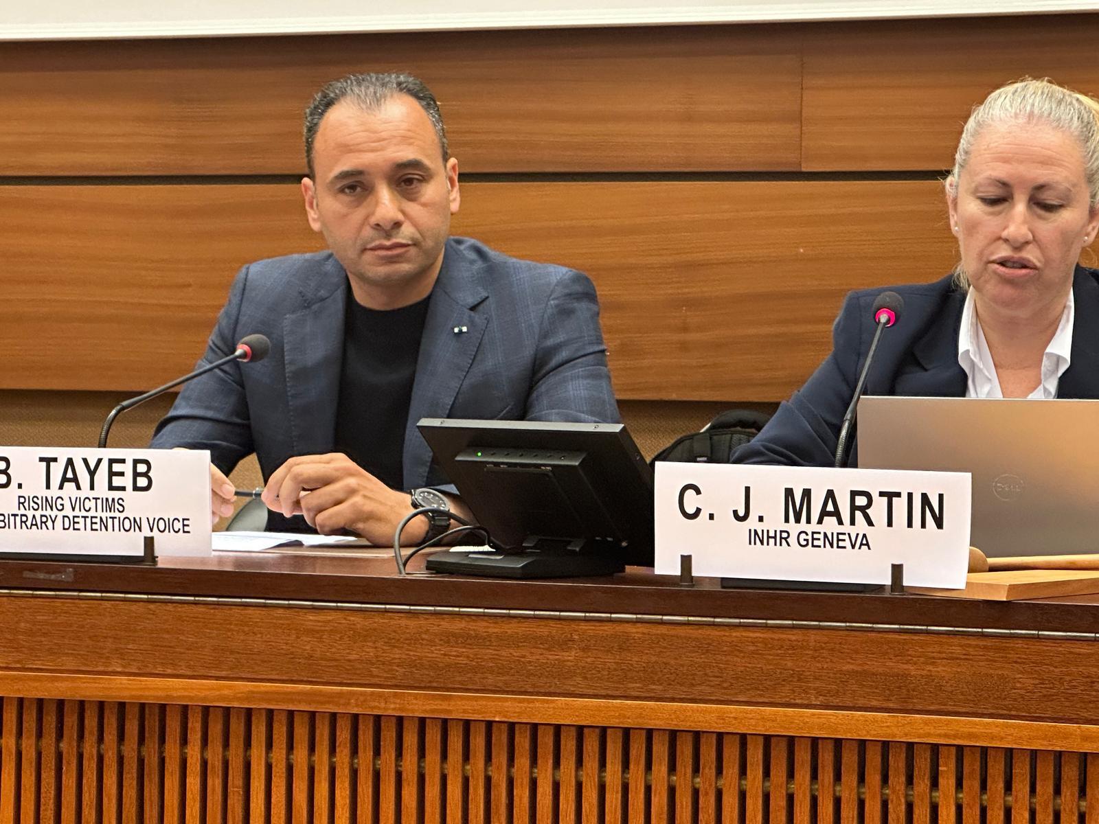 Le troisième témoignage était celui de l’entrepreneur français Tayeb Benabderrahmane , qui a été arrêté arbitrairement en janvier 2020 et a également été soumis à de terribles tortures et à des menaces de mort pour lui et sa famille, dans le but d’extraire des informations sensibles. Tayeb Benabderrahmane a raconté sa détention pendant 307 jours aggravé par des actes de torture répétés ,comment il a été privé de sommeil, soumis à des contraintes physiques sévères, à un traitement violent et à des menaces de mort, reflétant une campagne de terreur organisée. À son retour en France, il a été examiné par un médecin spécialisé qui a diagnostiqué un trouble de stress post-traumatique, des troubles anxieux, une perte de poids significative et des douleurs chroniques, des conséquences directes des mauvais traitements qu’il a subis.