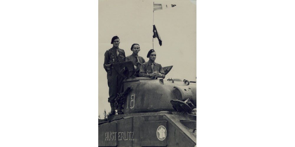 L’Austerlitz à la parade de victoire, à Paris, en août 1944. En haut à gauche, Jacques de Witasse, commandant de la compagnie.