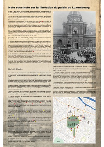 Pour mieux comprendre cette libération, retrouvez les photos du Palais du Luxembourg libéré issues du fonds Chevojon des archives du Sénat, accompagnées du récit Général de WITASSE (ex Commandant de la 2e Compagnie du 501e RCC) et d’une note succincte rédigée par un des rares fonctionnaires du Sénat encore en fonction à Paris.