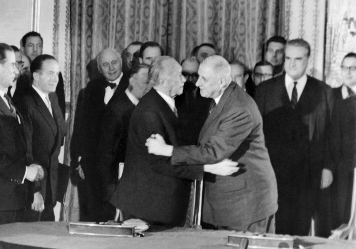 D’une part, la réconciliation franco-allemande est à porter au crédit de l’audace de Konrad Adenauer et du Général de Gaulle, 30 ans avant le geste MITTERRAND-KOHL et à peine quelques années après les atrocités nazies alors encore dans toutes les mémoires familiales. À l’époque, ils avaient osé dépasser ces pages noires, conscients que l’avenir ne pouvait se construire qu’autrement, jusqu’à instituer l’existence d’une amitié franco-allemande avec le Traité de l’Elysée du 22 janvier 1963. Leur posture s’est imposée comme héritage à leurs successeurs, même à ceux qui n’ont pas personnellement connu la guerre en Europe.