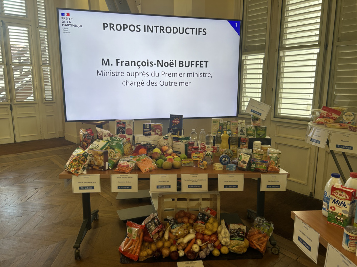 Lors de la réunion avec le ministre sur le point d’étape sur la mise en œuvre du protocole contre la vie chère, et afin d’illustrer la largeur du périmètre de produits couverts par le protocole du 16 octobre 2024, les distributeurs signataires ont souhaité apporter en préfecture un échantillon des produits qui verront leurs prix baisser à partir du 1er janvier. Ainsi, pour chacune des 69 familles de produits visées par le protocole, trois produits emblématiques sont exposés.