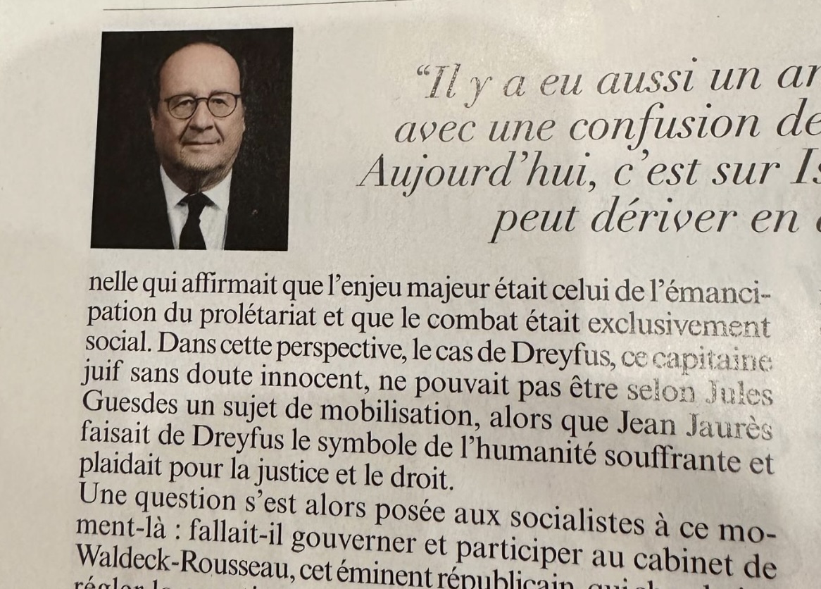 Comment comprendre aussi que François Hollande, dont l’amitié avec Israël a toujours été indéfectible et dont les rapports avec la communauté juive de France ont toujours été exemplaires, se laisse aller lors d’un entretien avec le Figaro Magazine à dire sur Dreyfus, « ce capitaine juif sans doute innocent… », l’air du temps ? L’antisémitisme d’atmosphère l’aurait-il contaminé à son tour ?