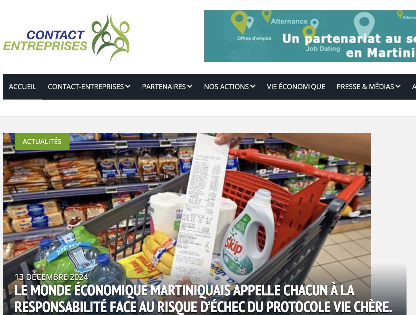 Fortement mobilisés pour répondre aux attentes des consommateurs dans le cadre du protocole “Vie chère”, nous, acteurs économiques martiniquais, déplorons les graves conséquences de la censure du gouvernement Barnier. Cette décision rend caduque l’inscription de la baisse de TVA sur les produits de grande consommation ainsi que les mesures de compensation des frais d’approche et la négociation des tarifs export dans le PLF (Projet de Loi de Finances), empêchant de fait son application au 1er janvier 2025.