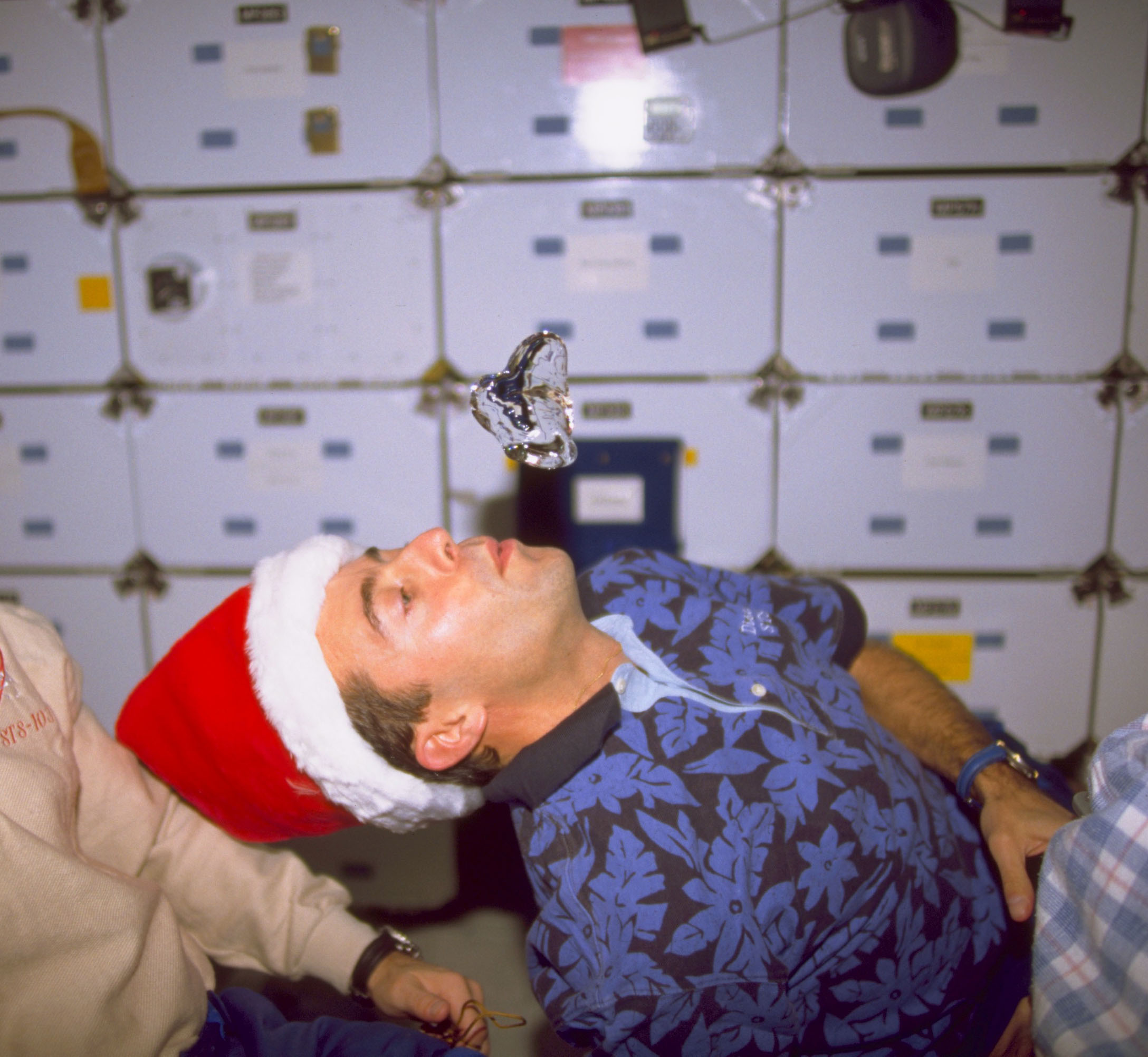 Après le largage du télescope, l’équipage décide alors de célébrer Noël et de déguster un repas de fête. L’astronaute Suisse, Claude Nicollier sort ses chocolats et Jean-François, ses plats du Sud-Ouest, compatibles avec les exigences sanitaires du vol spatial : du foie gras entier en petits pots de verre et un confit de canard à la sauce bordelaise aux cèpes, Le vin est interdit à bord, mais il y en avait tout de même un peu dans la sauce bordelaise ! Une découverte pour les coéquipiers américains qui ne connaissent tout simplement pas ces spécialités gastronomiques.
