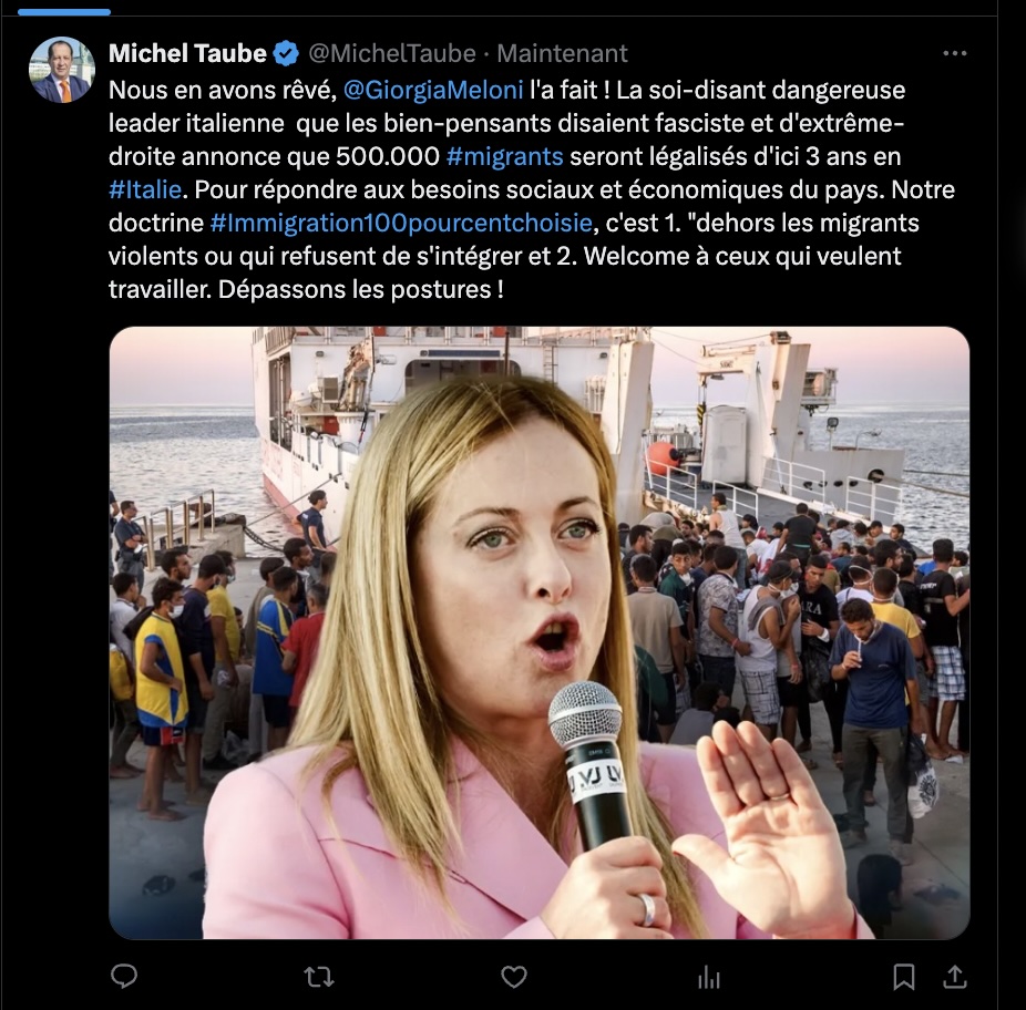 Giorgia Meloni régularise 500 000 migrants en Italie ! Vu sur le web