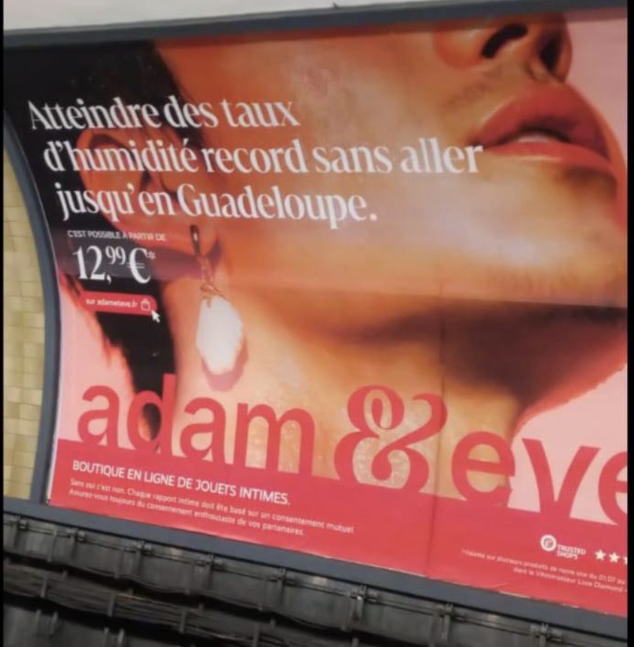 A cette publicité publiée par une boutique en ligne de jouets intimes dans le métro parisien à coup de grandes affiches sur lesquelles on peut lire :