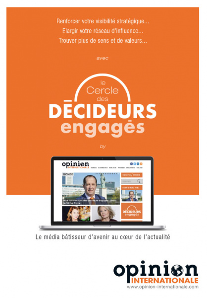 En adhérant au Cercle des décideurs engagés d’Opinion Internationale, je renforce ma visibilité stratégique, j’élargis mon réseau d’influence et je m’engage dans un Cercle porteur de sens et de valeurs, tel que le présentent l’édito de Michel Taube : « nous sommes tous des décideurs engagés » et la rubrique des Décideurs engagés. Par mon engagement, je soutiens un média 100% indépendant.