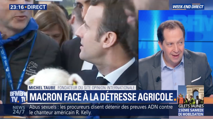 Michel Taube sur BFMTV dimanche 23 février commente la journée d’Emmanuel Macron au salon de l’agriculture et l’Acte XV des gilets jaunes :