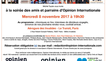 Venez rencontrer Opinion Internationale le 8 novembre à 19h30 avec Ari Vatanen, Jean-Paul Delevoye et Bariza Khiari