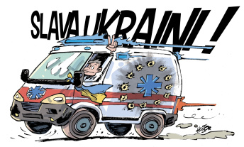 Rapatriée par l’association luxembourgeoise AFUCA, une ambulance d’Ukraine criblée de balles fait le tour d’Europe pour sensibiliser à la violence des conflits, récolter des fonds et sauver des civils en Ukraine.