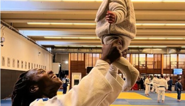 La caméra saisit la scène dans les tribunes du palais des sports Emirati. Athéna, se retourne curieusement en direction du tatami. Elle attendrit les téléspectateurs…